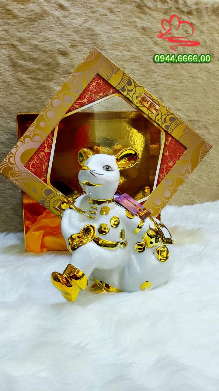 Rượu Chuột sứ trắng mạ vàng Pháp mang ý nghĩa may mắn tài lộc cho năm mới 2020, cực kì thích hợp để làm quà biếu cho đổi tác, người thân và bạn bè của bạn kết chặt tình hữu nghị trên công việc, thắt chặt tình cảm cho gia đình bạn, gắn kết tình nghĩa bằng hữu.