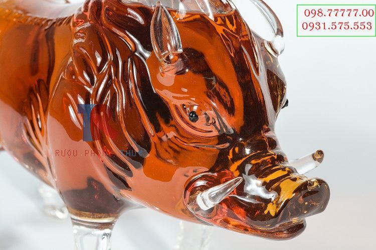 Đầu tiên chúng ta điểm qua vẻ ngoài của Rượu hình Heo rừng. Đây là loại bình thủy tinh, được tạo tác thành hình linh vật - hình con heo. Điều đặc biệt làm nên loại bình này đó chính là sự thủ công, để làm ra chiếc bình rượu này người ta hoàn toàn không dùng khuôn đúc. Không dùng khuôn đúc có nghĩa là hoàn toàn bằng tay, do đôi bàn tay tài hoa của những người nghệ nhân làm ra. và bạn sẽ không tìm được hai chiếc bình giống nhau bởi vì sẽ không có một khuôn đúc nào cả.