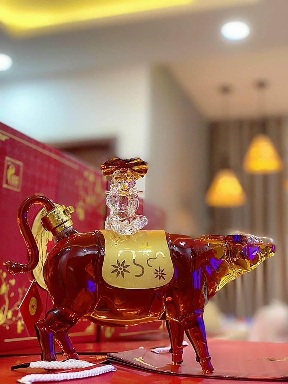 Rượu phong thủy hình con trâu được lấy cảm hứng từ vị rượu Cognac Nga với hương vị đặc trưng riêng là sản phẩm được nhiều người tìm kiếm làm quà tặng dịp tết Tân Sửu 2021.